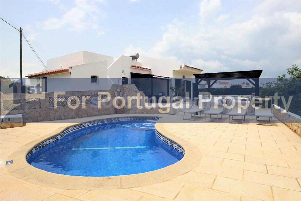 Fantastic three bedroom detached villa with swimming pool, in the area of Guia.The villa comprises an entrance hall, a beautiful living room next to the dining room with access to a spacious covered outdoor area, a wood burning stove, an equipped kitchen, three bedrooms with access to the garden and the pool area, two bathrooms, which of one has a shower.