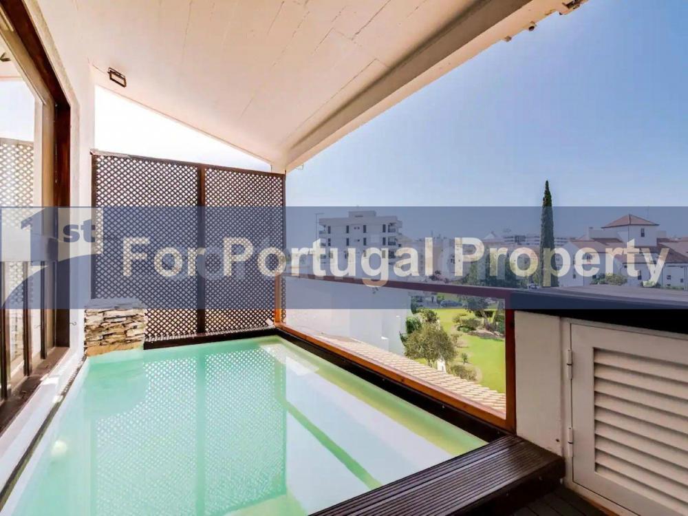 Magnificent three bedroom apartment for sale, located in Vilamoura.Discover the potential of this duplex apartment with three bedrooms, three bathrooms, a living- and dining room and a kitchen. With a privileged location, offering an incomparable investment opportunity. This property promise an unique residential experience, where convenience creates the ideal setting for your life in Vilamoura. On the balcony of the apartment there is a small swimming pool that is a true dream and perfect for relaxing and enjoying on hot summer days.